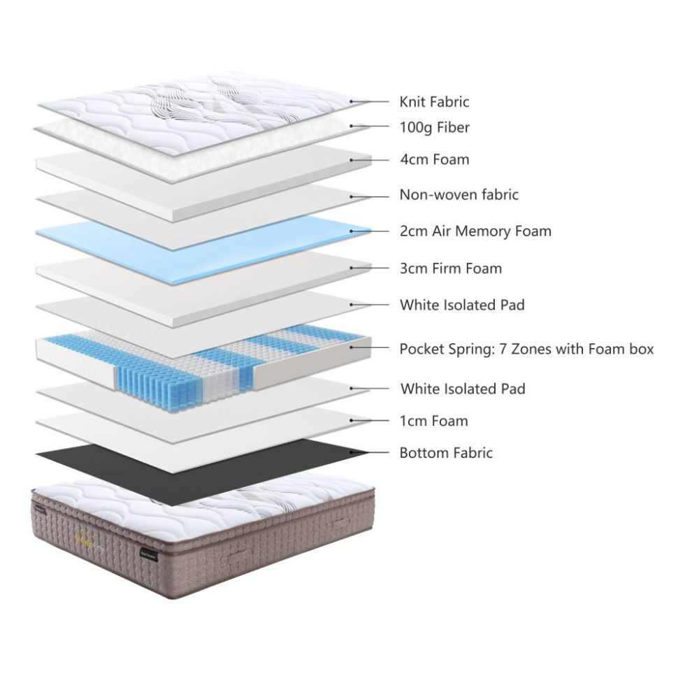 - 7-Zone Support System: Our innovative 7-zone design delivers customized support to different areas of your body. Each zone is specifically crafted to ensure proper spinal alignment, reduce pressure points, and enhance overall comfort.