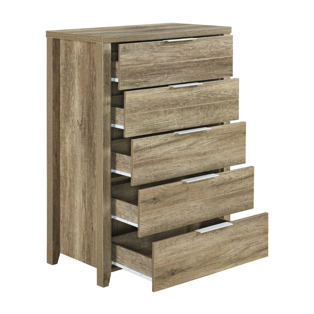 The drawers of both the dresser and bedside table have slim handles. This safety feature would reduce the chance of getting hurt while walking beside it. Also, high quality metal handles will offer a gorgeous look to your bedroom.