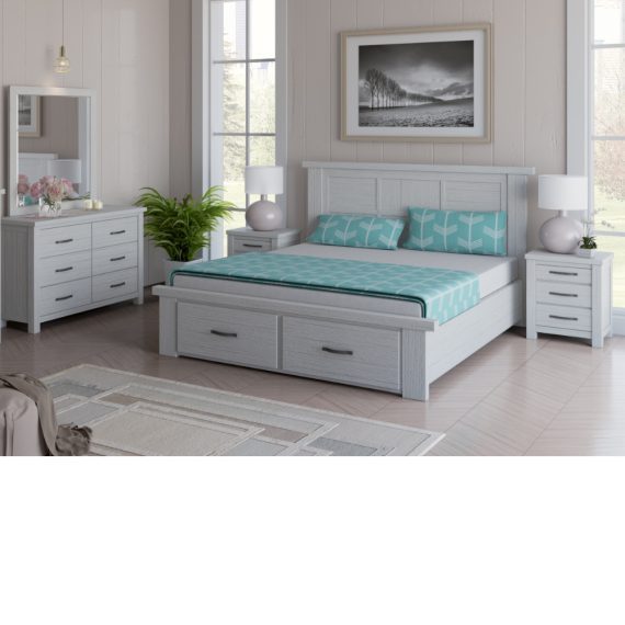 Maldon Bed Frame with storage drawer-Brushed White-3 sizes.