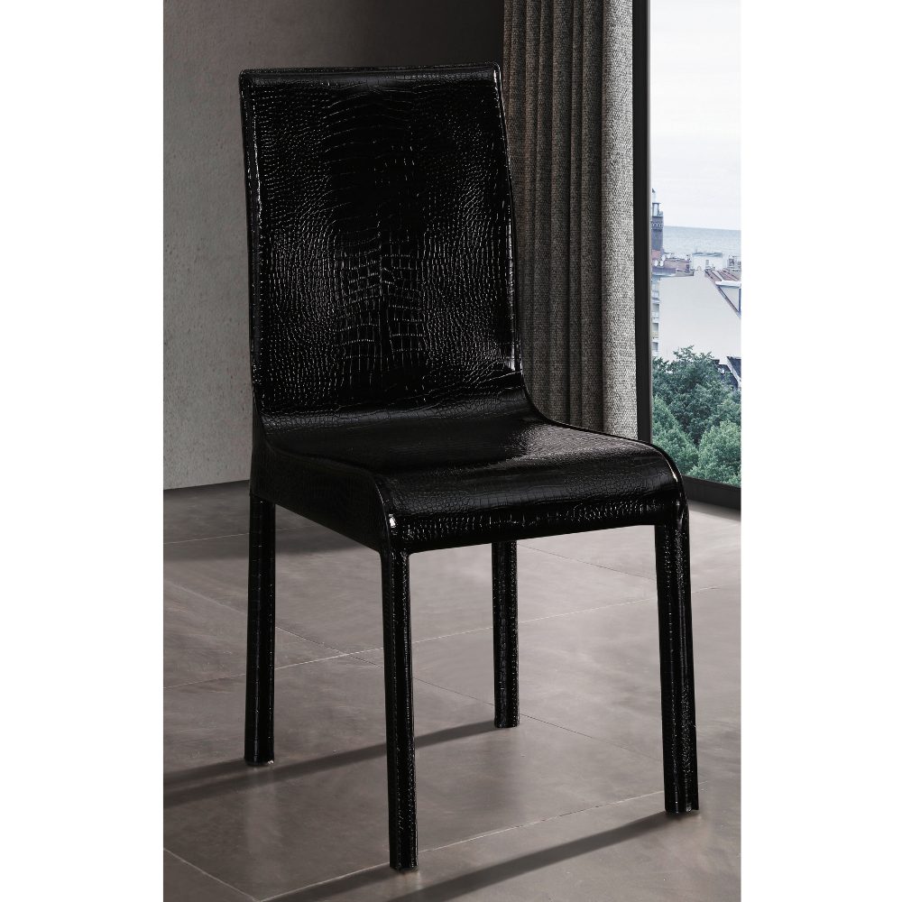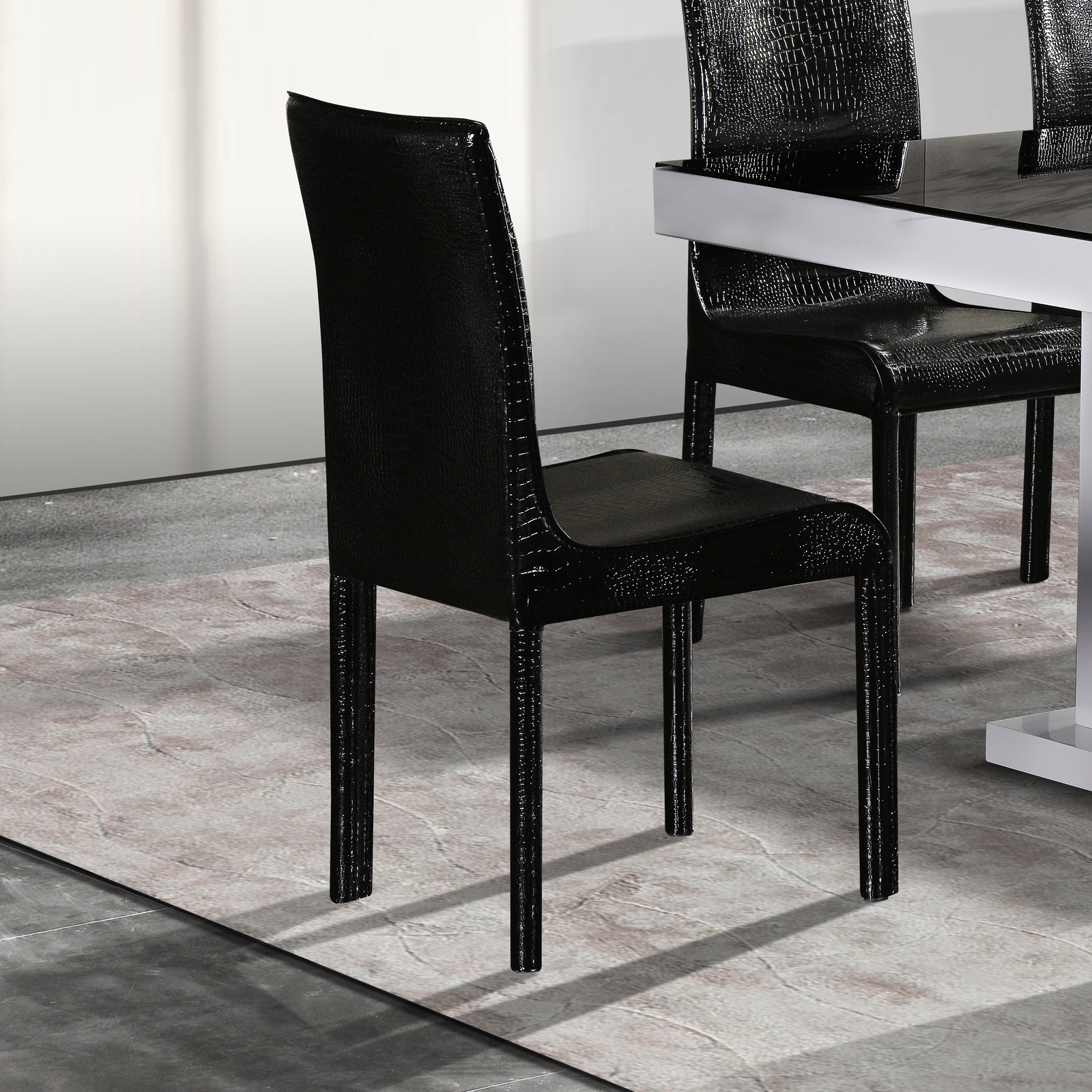 This contemporary, upholstered dining chair is the ideal addition for your dining area. This generously sized chair features a padded, upholstered leatherette seat, mid high back rest and wooden frame for strong support.