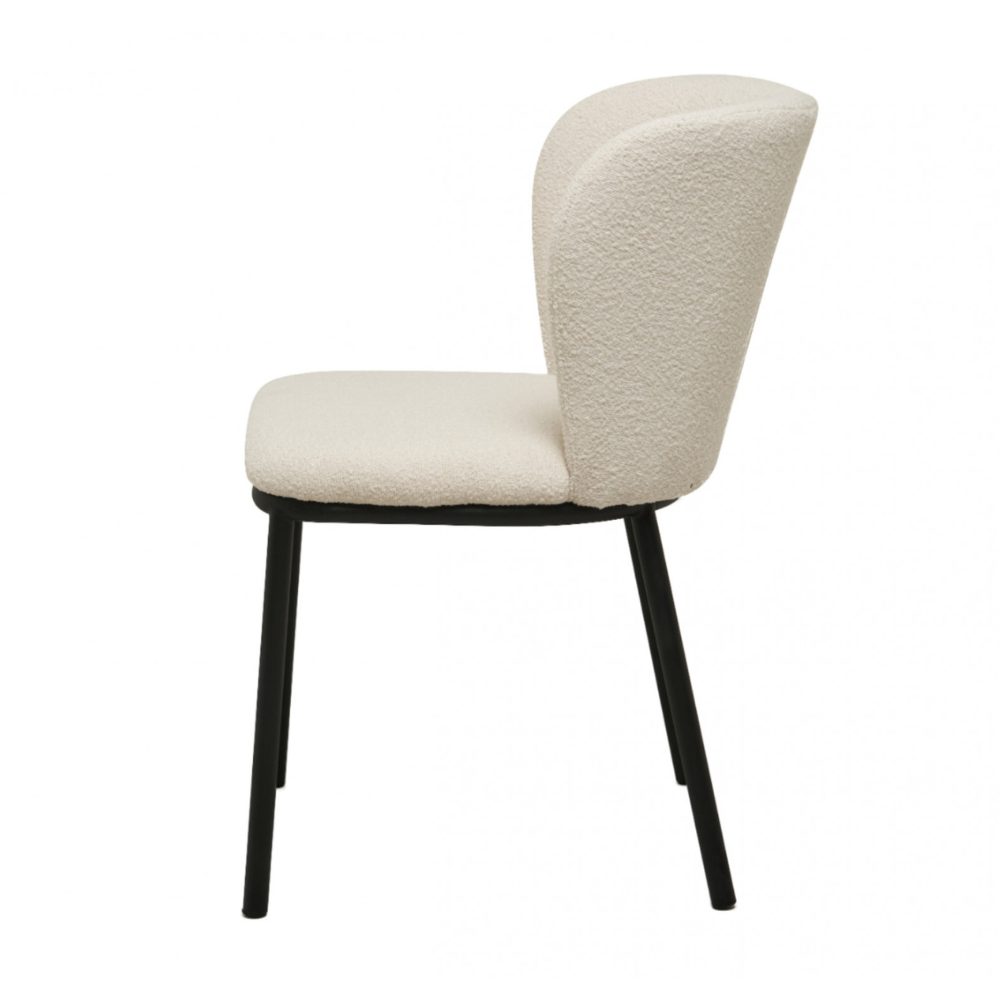 Simple, sophisticated look – This simple yet sophisticated dining chair brings a visually stunning element to any dining area. Featuring its textured boucle upholstery, angled black painted frame and contrasting stitching, it adds both texture and color to create a unique look.