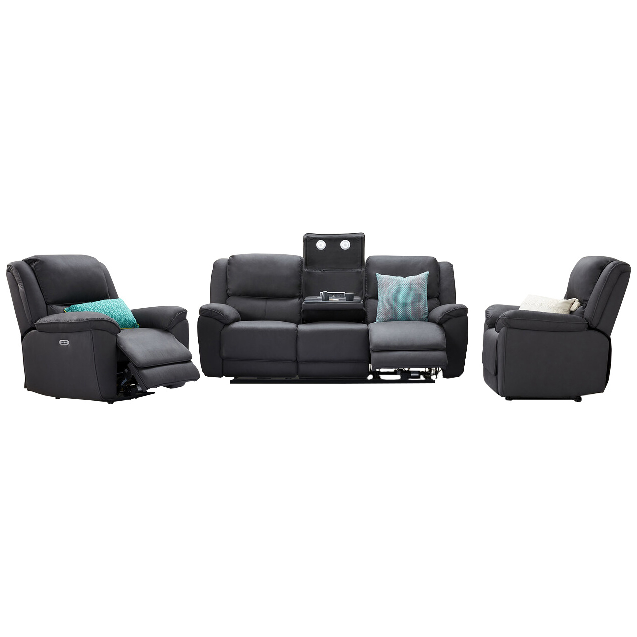 - 3 Seater has the drop down tray with power station, USB ports, cup holders, wireless phone charger, touch buttoned audio system with subwoofer