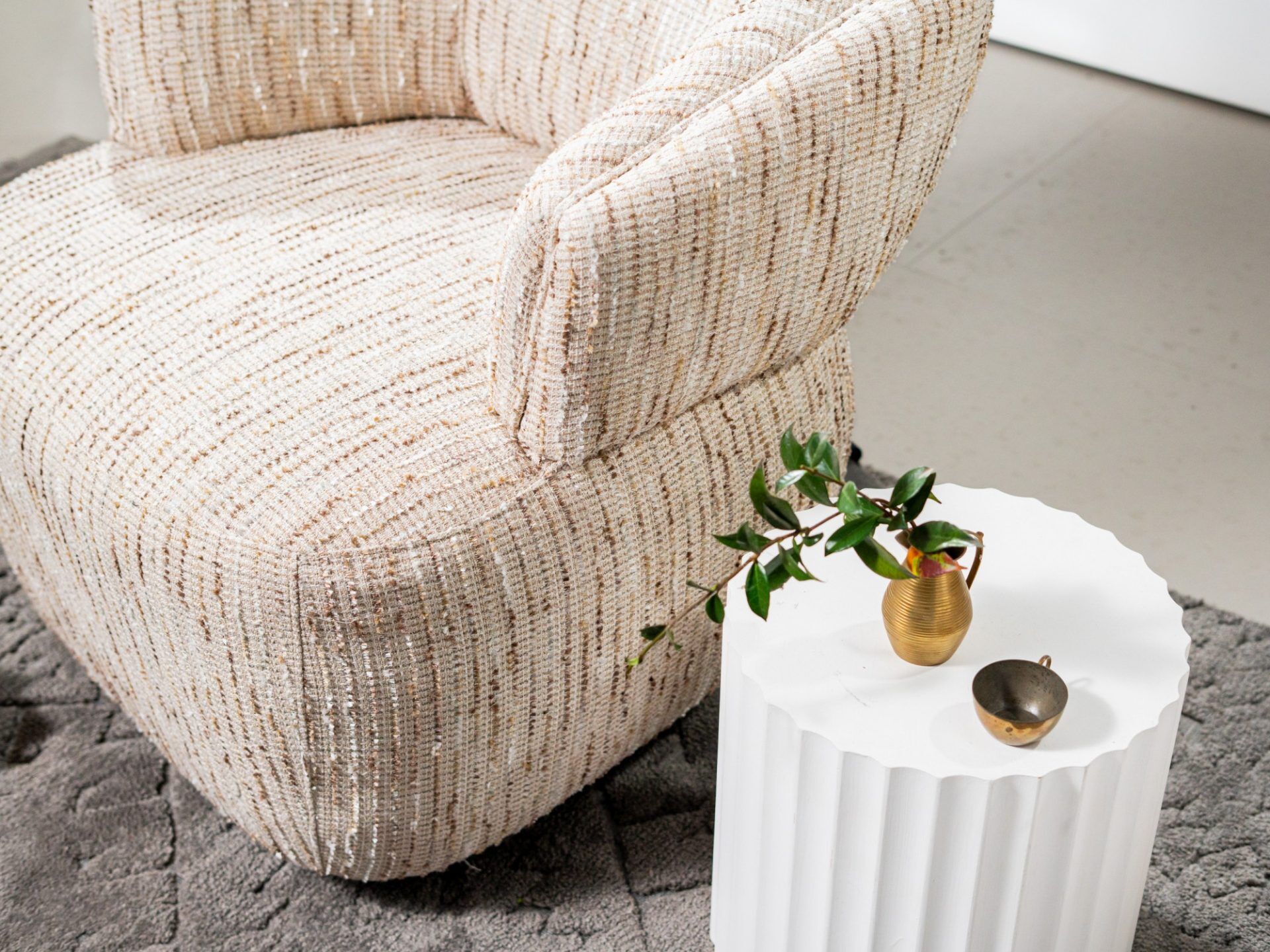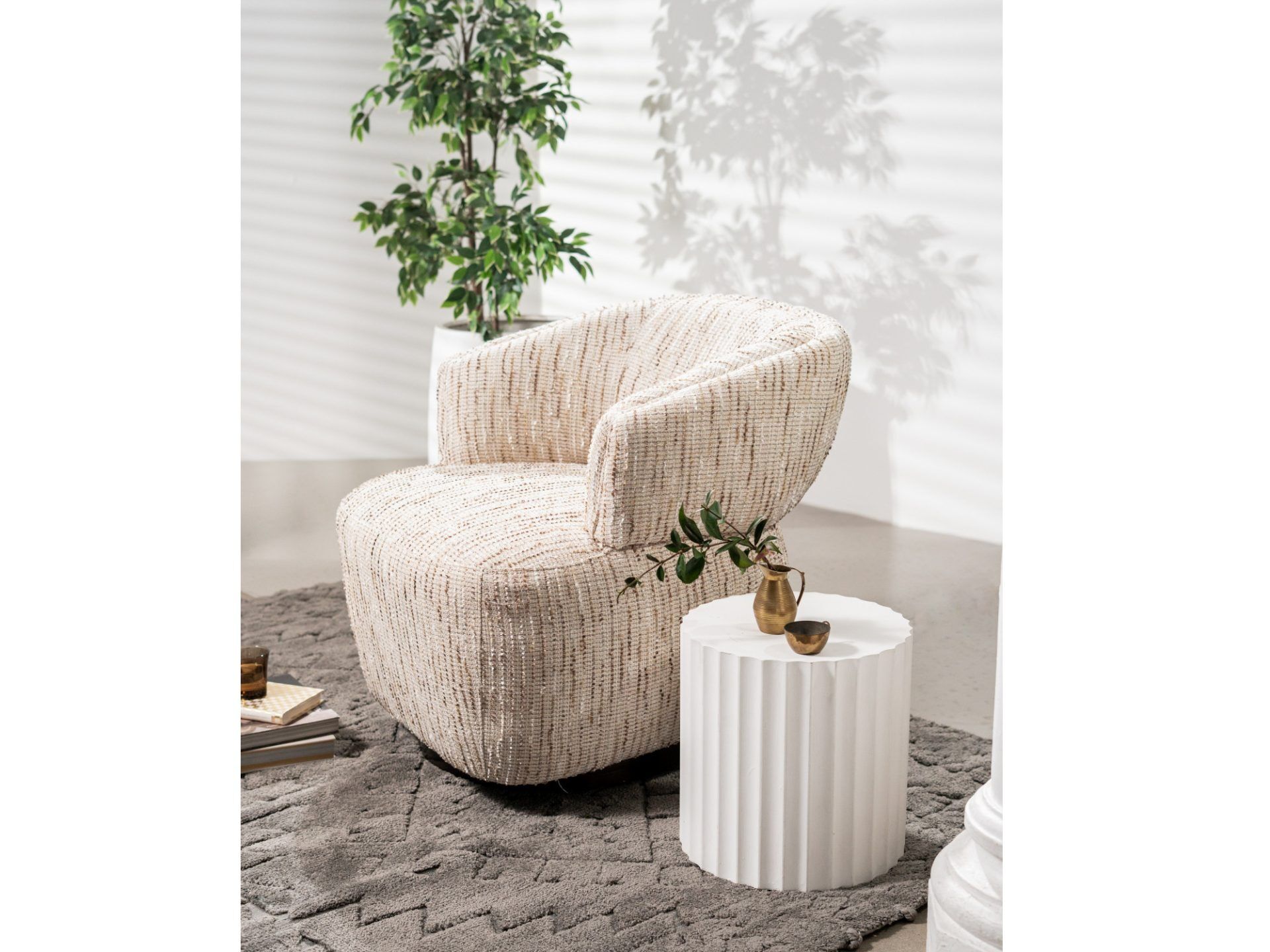 Introducing the Benji Swivel Occasional Chair – the perfect addition to any living space. This chair embodies elegance and sophistication, making it an eye-catching piece in any room. The sleek design and textured fabric give it a luxurious touch, while the swivel seat adds a modern twist. Not only is this chair aesthetically pleasing, but it also offers unbeatable comfort. Sink into the soft, plush seat and let your worries melt away.