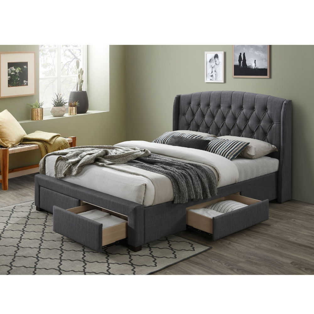 A contemporary yet modern design Art Deco twist that will turn your bedroom into a luxurious retreat – the CALISTA storage Bed Frame features soft upholstery with and practical but stylish multiple storage. Say goodbye to clutter and hello to elegance. Available in King, Queen and Double bed frame with 2 on trend colour . Mattress available, sold separately.