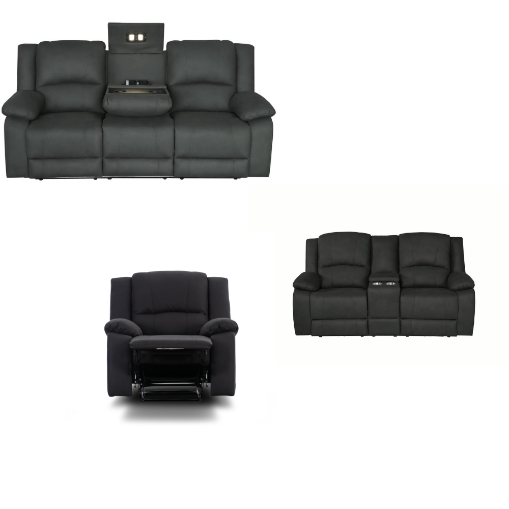 Transform your living space with our luxurious Electric Recliner Suite, available in 3-seater, 2-seater, and single recliner options. Each piece is crafted from high-quality Sueda fabric, offering both style and comfort in four stunning colors: Onyx, Marine Blue, Jet, and Latte.