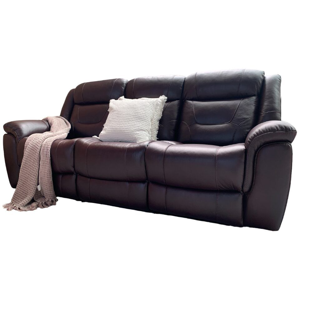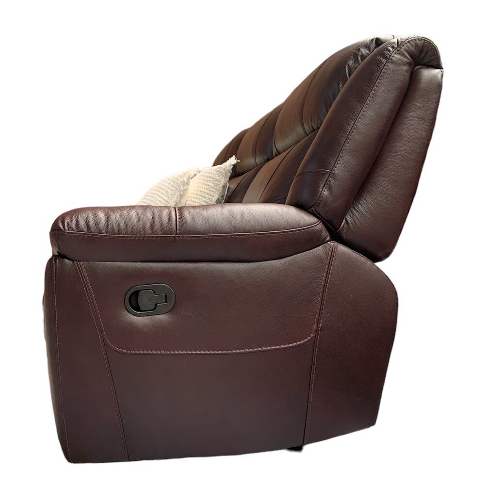 The Caroline 3+1+1 Seater 100% Italian leather manual recliner sofa offers contemporary style and serious comfort, in soft and luxurious Italian leather with high quality craftmanship .It has a strong frame, premium lumbar support generously proportioned higher density foam with fibre seat cushions, luxury arm cushions, a high back with fibre filled back cushions.