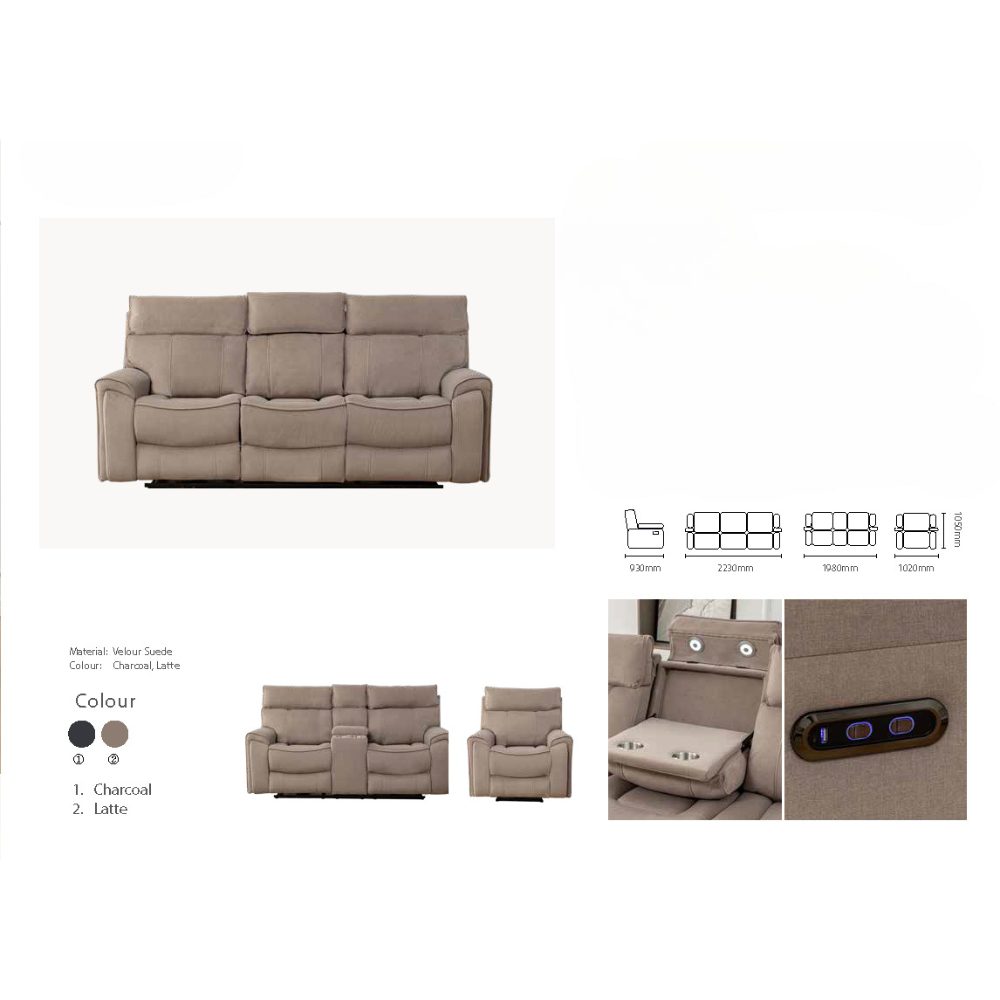 Enhance your lounging experience with our Century Fabric Recliner Suite. Features both type C and USB port for the charging of your devices, where style meets functionality for the ultimate in comfort and convenience. Designed with a velour fabric upholstery, this recliner offers a soft and inviting feel, inviting you to sink into its embrace after a long day. The gentle reclining mechanism allows you to effortlessly adjust the chair to your preferred position, whether you’re lounging back to read a book or catching up on your favorite TV shows. Available in 2 color Charcoal and Latte, sold separately.