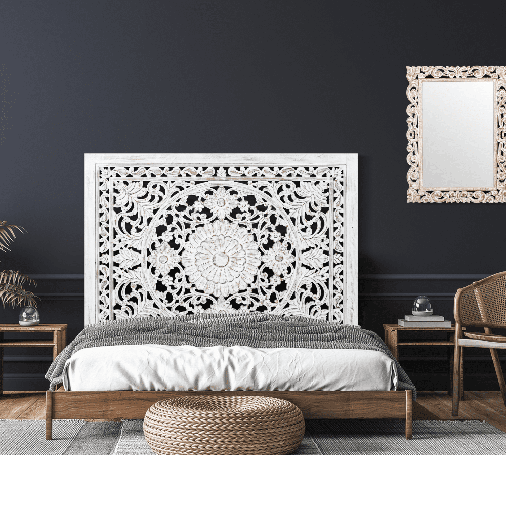 • Tall statement headboards are handcrafted and made from combination of mango wood and MDF