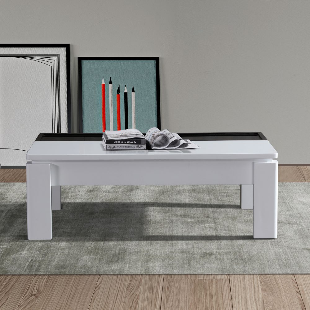 A high gloss finish in Black & White colour combine to make this Coffee Table an essential piece of furniture for your living room. A thick rectangular MDF top makes for a secure surface to hold any drinks or books. The contemporary design ensures this coffee table will make a stylish living room centerpiece, while effortlessly blending within any style of home interior.