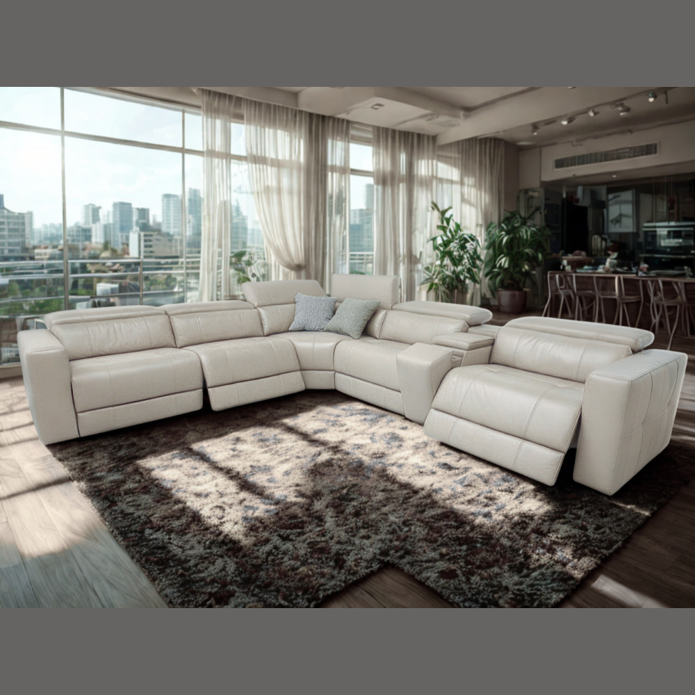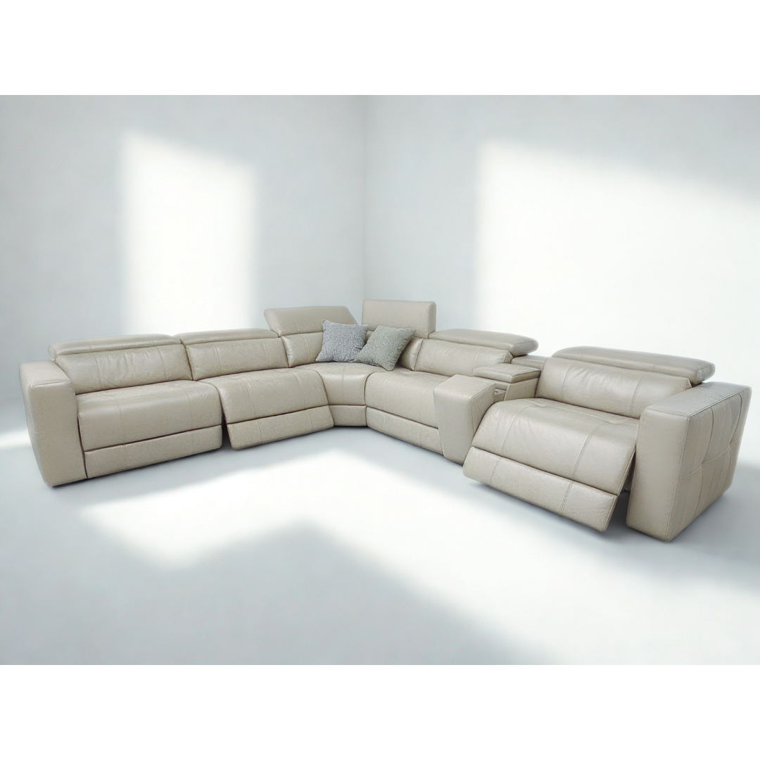 The Harbour 6-Seater with 3 electric recliner and 3 electric headrest Leather Corner Sofa redefines modern luxury and comfort. Upholstered in high-quality genuine leather, this sofa combines timeless elegance with superior craftsmanship — a perfect statement piece for any contemporary living room.