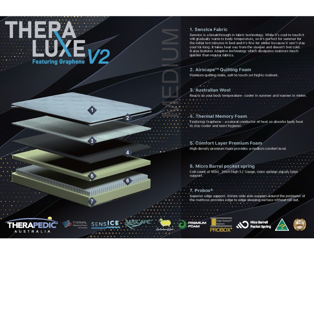 4. Thermal Memory Foam :Featuring Graphene – a natural conductor of heat so absorbs body heat to stay cooler and more hygienic.