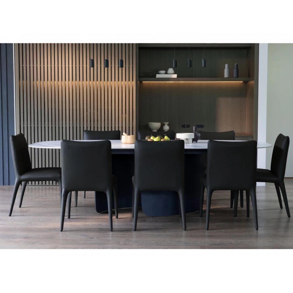 The Matzo Dining Chair is the perfect addition to any dining room. Crafted with sophistication in mind, this chair is fully upholstered making it durable yet comfortable. Unlike other chairs, the Matzo is upholstered in high-quality PU that is sure to stand the test of time. Its classic shape and curved edges make it a timeless piece that will become a highlight in any home’s interior decor. The combination of durability, aesthetic appeal, and comfort make this chair an ideal choice for anyone looking to upgrade their dining space. Available in 3 color Tan, Black or Olive, Sold separately. Complete the dining setting with our Nelson ceramic top 260cm large dining table, available to buy separately.