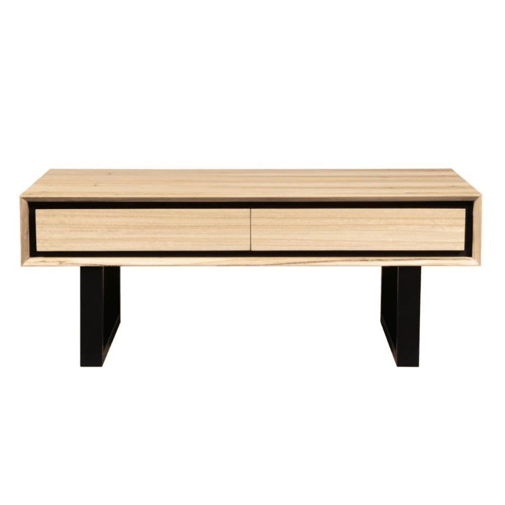 • The timber is contrasted by the black powder coated metal leg frame and black shadow gap around the doors and drawers