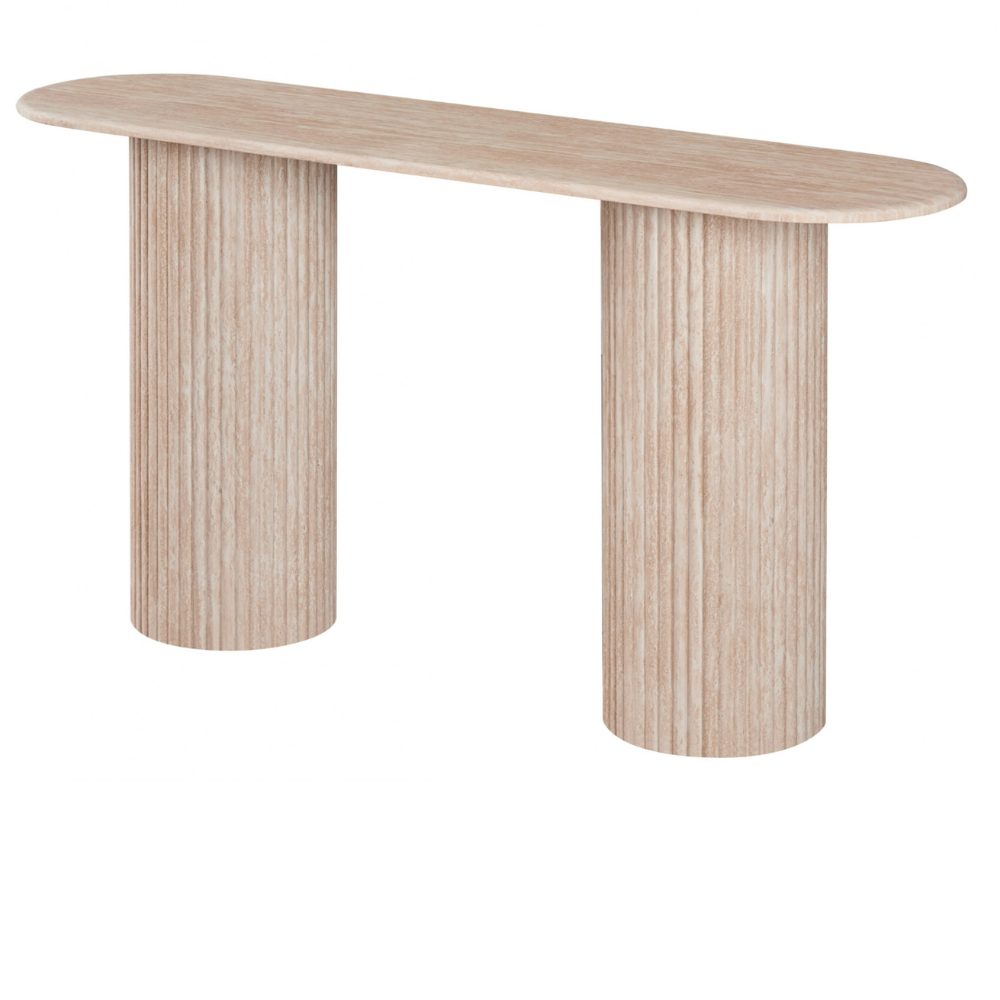 Our console table is expertly crafted to bring you a unique and stylish addition to your home decor. The stunning stone range travertine look paired with the corrugated MDF base creates a one-of-a-kind piece that will elevate any dining room.