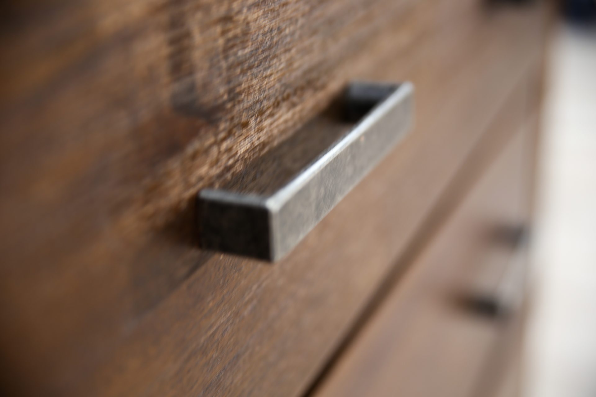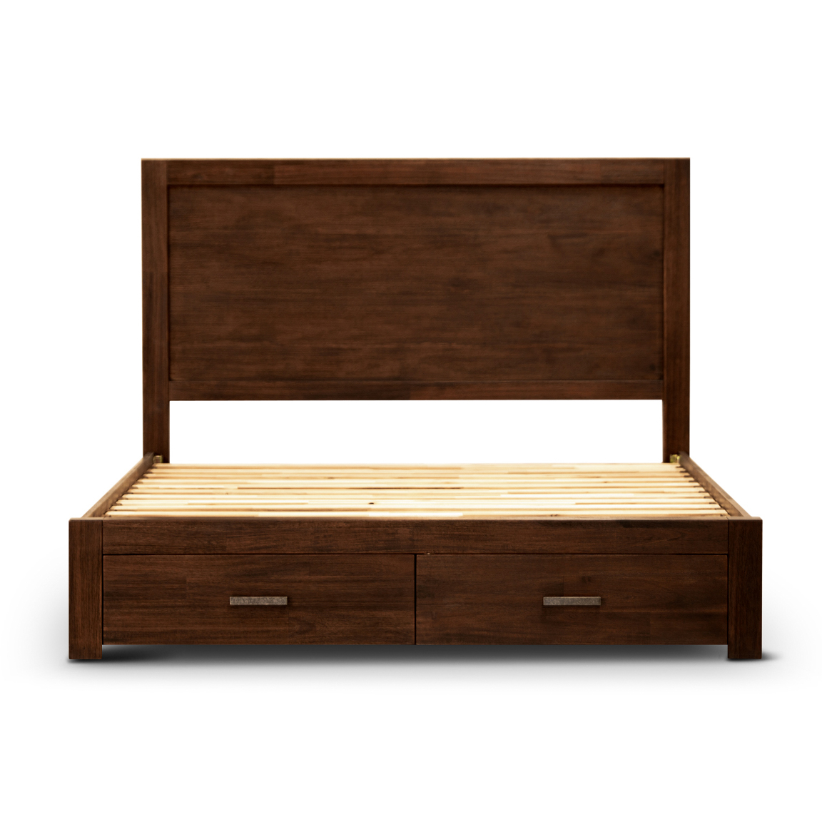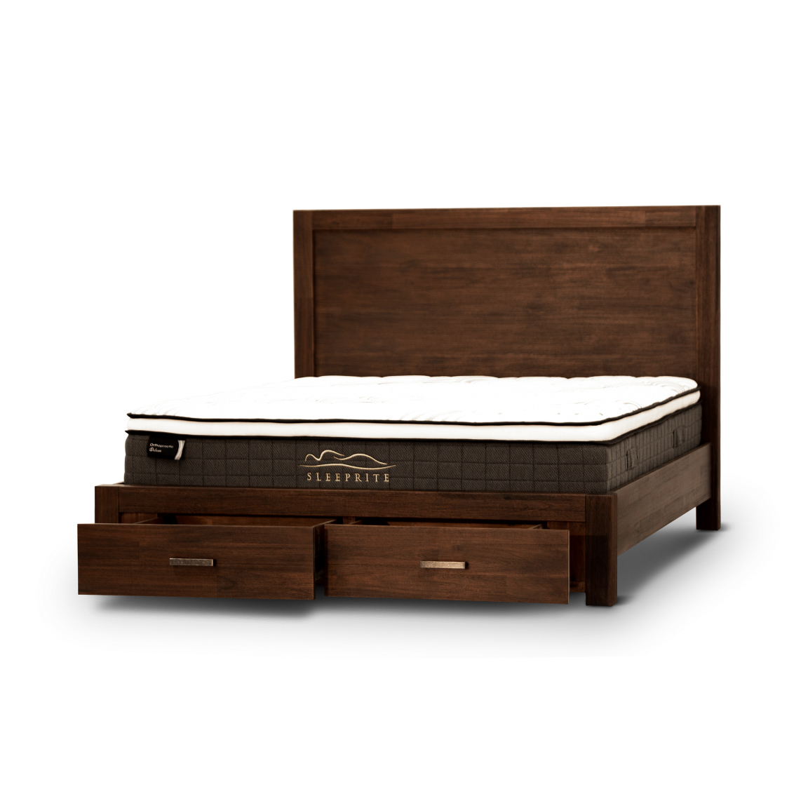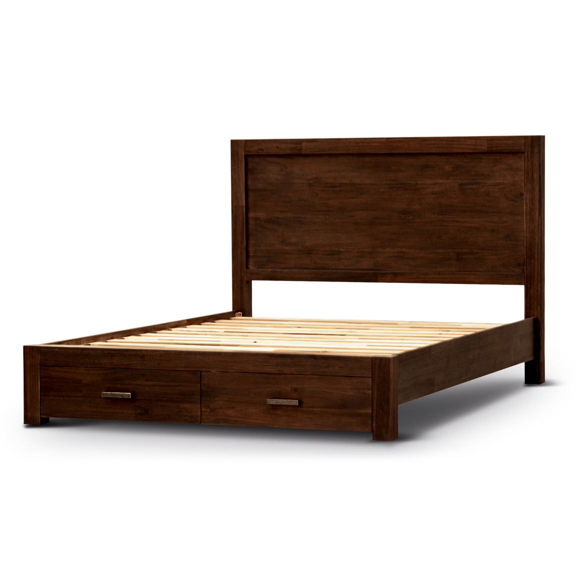 Paso 4Pcs bedroom setting including King Bedframe, 2 bed side and 1 Tallboy is a modern contemporary clean line design, featuring solid acacia timber with 2 handy drawers for extra storage . Crafted with Solid acacia side rails and slats with metal handles.