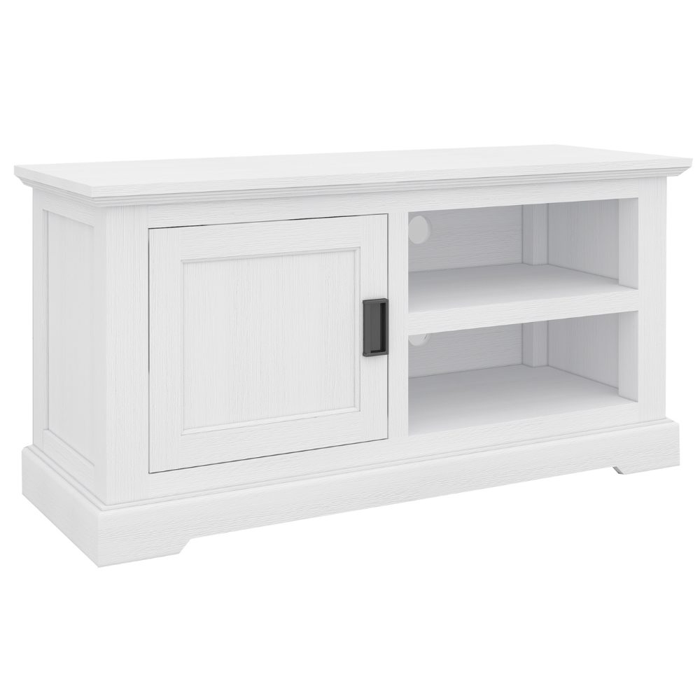 Simple and stylish, Fully assembled RAPHAEL TV UNIT with 2 niches and 1 doors crafted of solid acacia timber, offering a Simple, functional, contemporary coastal design, brushed to ensure a soft surface-plenty of room for all your media components. 2 niches-fronted, so it’s easy to use remote controls, and cable cut-outs at the rear help keep leads out of sight. The solid construction will support all your storage needs for years to come while acacia legs bring a sense of cohesion to the piece.