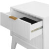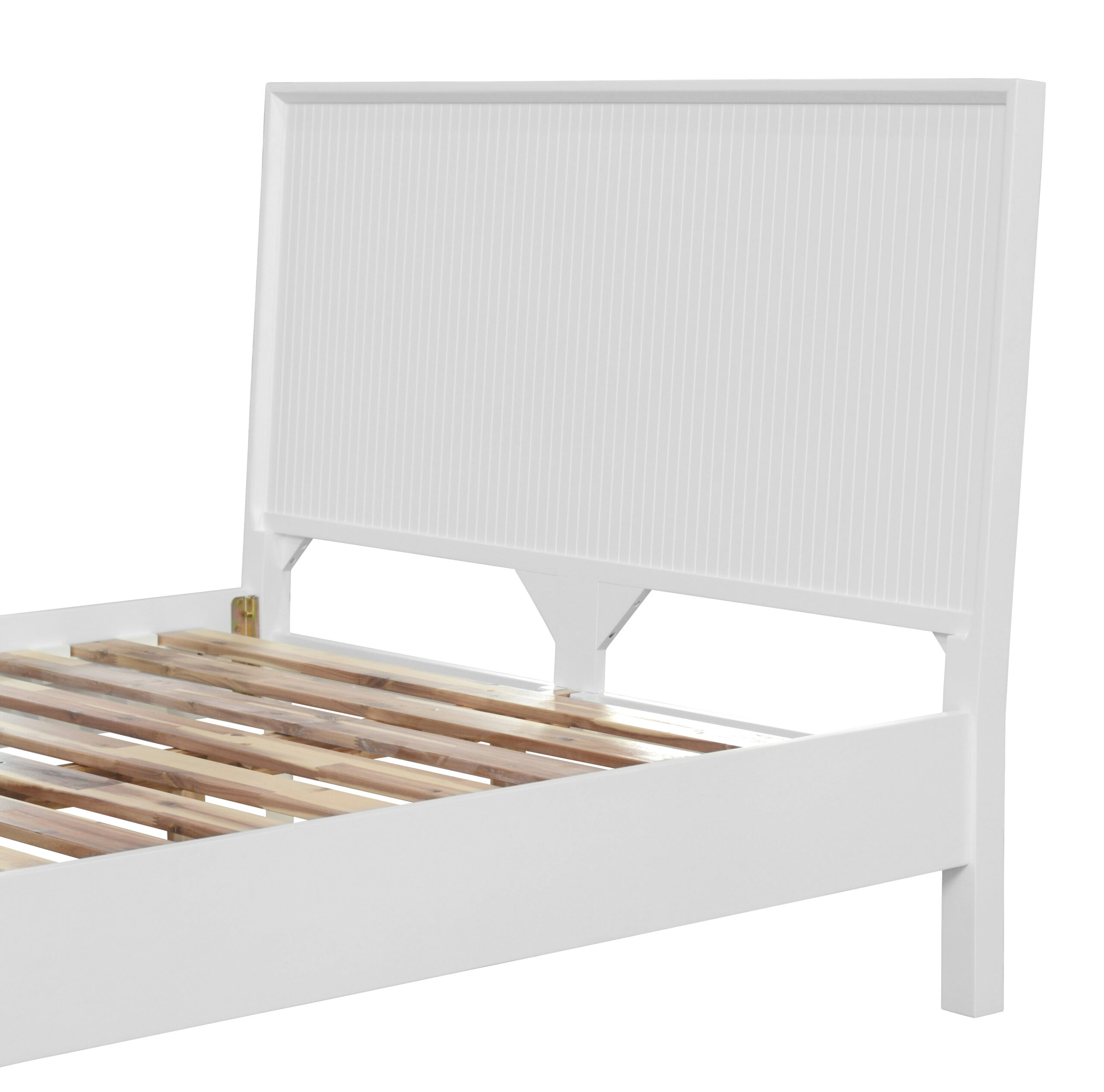 • Traditional construction of Acacia in brushed white finish paired with straight line details for modern appeal