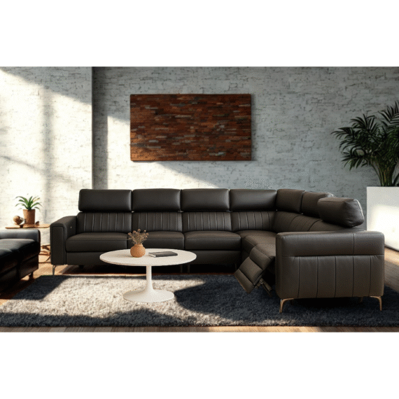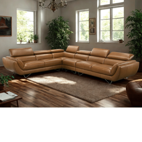 Harbour Dual Motor Leather 6 Seaters Modular Electric Lounge-Tan Color