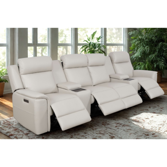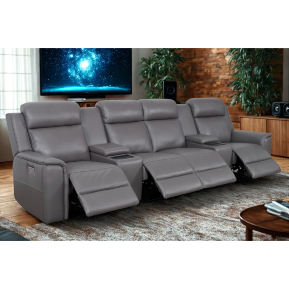 Courtney 4 Seater Dual motor Home Theatre Sofa- Full Leather-Graphite